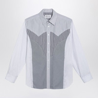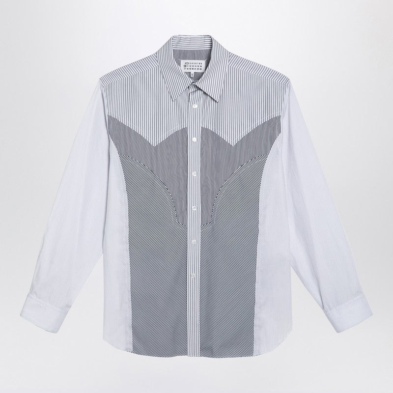 Blue striped cotton shirt from Maison Margiela featuring a patchwork four-stripe pattern, a yoke, a curved raw cut hem, a classic collar, a front button placket, long sleeves with buttoned cuffs and a Four Stitches logo on the back. Model wears size 40 Model measurements: Height: 185 cm Chest: 100 cm Waist: 83 cm Hips: 92 cm Size Type: INT Material: Cotton SKU: S50DT0037MTN024/PMARGI961401 Our Products Are 100% Genuine. In All Cases We Stand By The Authenticity Of Every Product Sold On Our Site. All sales are final and we only accept returns for quality issue. Buyer is responsible for any import tax/duty if applicable.