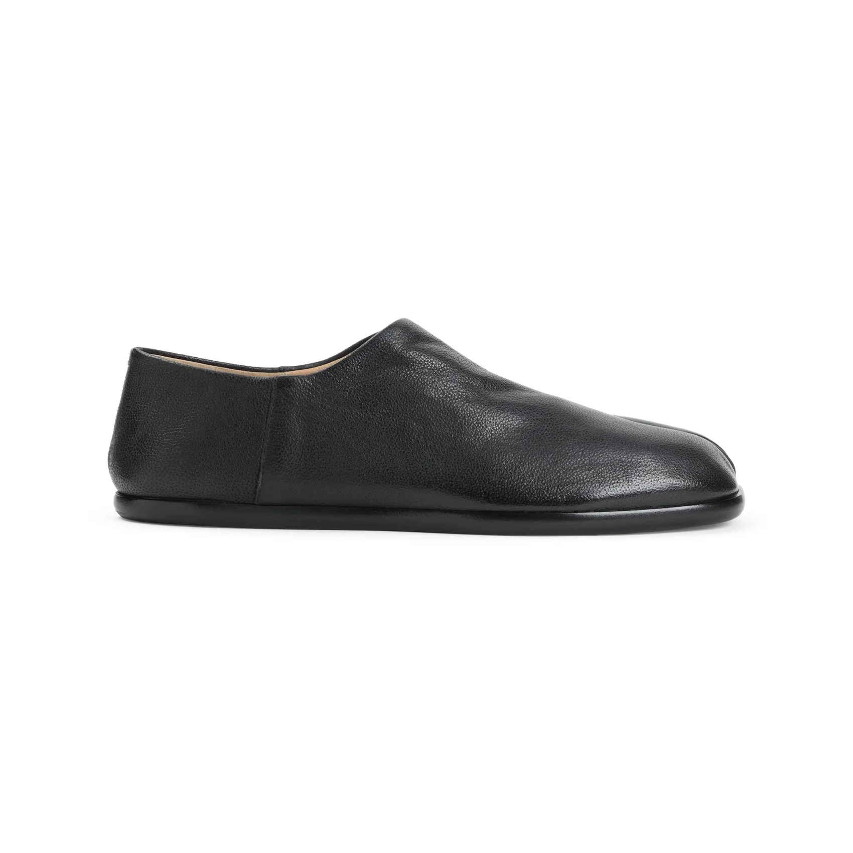 Maison Margiela Black leather Tabi Babouche Loafers. Black leather upper, siganture split toe design. Black leather insole, beige leather and suede lining. Black leather sole with numbering system. Camel Hair | 100%CAMEL Size Type: IT SKU: S57WR0051PR058Black Our Products Are 100% Genuine. In All Cases We Stand By The Authenticity Of Every Product Sold On Our Site. All sales are final and we only accept returns for quality issue. Buyer is responsible for any import tax/duty if applicable.