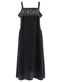 Maison Margiela presents an embroidered dress that captures the essence of timeless elegance and contemporary design. Perfect for those seeking a distinctive garment, this dress expresses refined femininity through careful detailing and a sophisticated aesthetic. The structure of the dress enhances the natural silhouette, offering an ideal choice for any special event, ensuring a memorable impact. || - Embroidered - Flared - Sleeveless - Square neckline - Regular fit || With its distinctive square neckline, this embroidered dress becomes a staple in a modern woman's wardrobe. Pair it with a minimalist jacket for a daytime look or an elegant blazer for a sophisticated evening. The dress also lends itself to more relaxed settings, thanks to its regular fit that ensures comfort without sacrificing style. The embroidered sash adds a touch of craftsmanship that elevates the meeting of tradition and design. 62% viscose 38% silk SKU: S51DD0009S76578900 Our Products Are 100% Genuine. In All Cases We Stand By The Authenticity Of Every Product Sold On Our Site. All sales are final and we only accept returns for quality issue. Buyer is responsible for any import tax/duty if applicable.