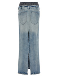 Cotton denim skirt with layered fabric detail applied at the waist, hook and button zip closure, pockets, wide front and back split. Color: Multicolor Size & Fit: true to size fit Composition: 100% cotton Made in: Italy SKU: S51MI0006S30383961 Our Products Are 100% Genuine. In All Cases We Stand By The Authenticity Of Every Product Sold On Our Site. All sales are final and we only accept returns for quality issue. Buyer is responsible for any import tax/duty if applicable.
