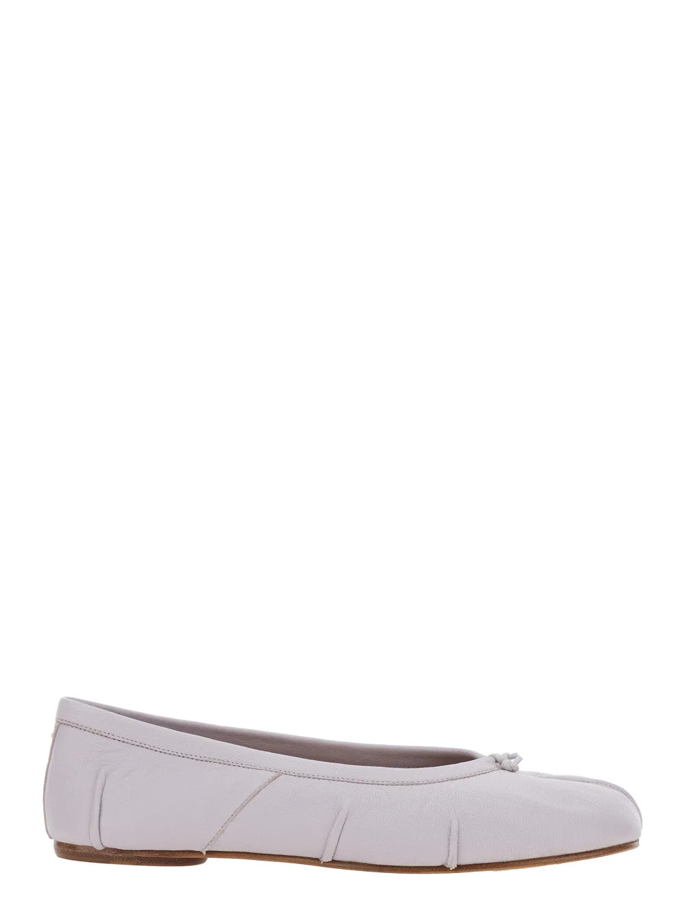 Maison Margiela Women White Ballet Flats With Tabi Toe And Bow Detail On Front In Leather Woman
