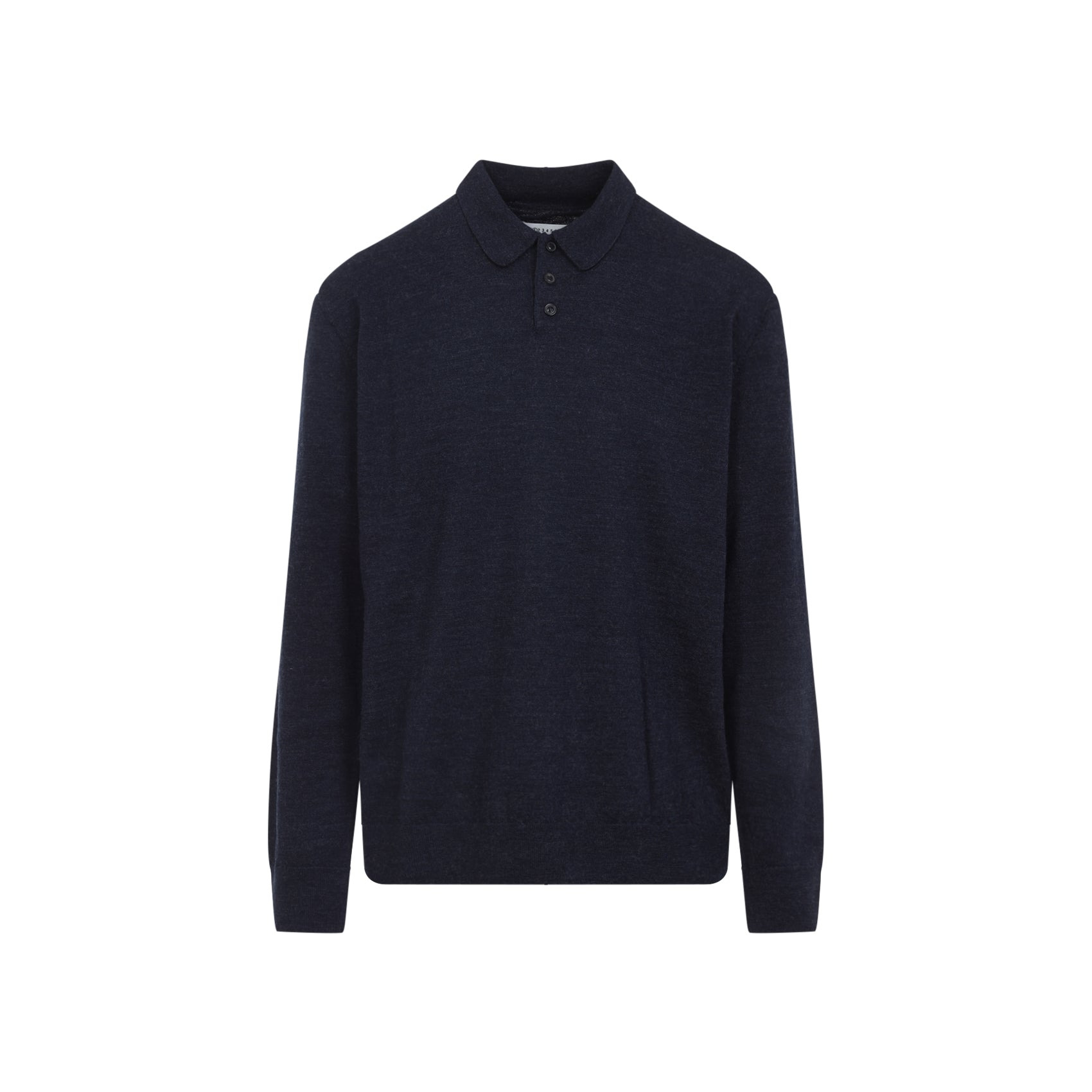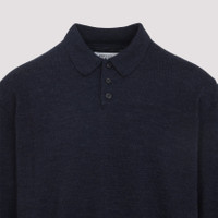 Maison Margiela Navy Wool Polo. Navy wool, polo collar, long sleeves, ribbed cuffs and waistband. Front button fastening, elbow patches and signature 4 stitches on back panel, regular fit. Wool | 100%WOOL Size Type: INT SKU: S50GL0061M13098Blue Our Products Are 100% Genuine. In All Cases We Stand By The Authenticity Of Every Product Sold On Our Site. All sales are final and we only accept returns for quality issue. Buyer is responsible for any import tax/duty if applicable.
