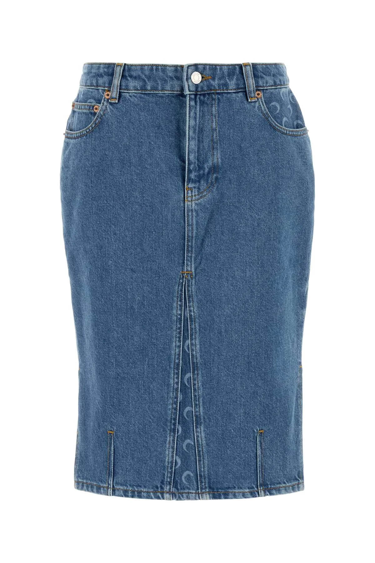 MOON LASER BLUE WASH DENIM KNEE LENGTH SKIRT