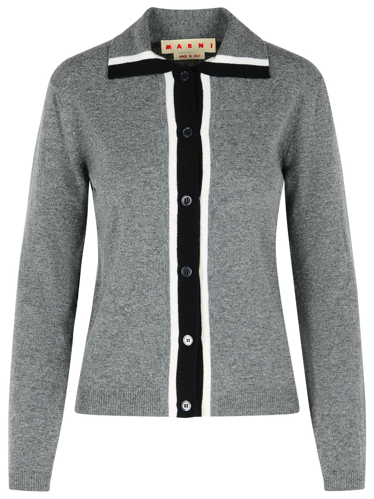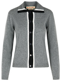 GRAY WOOL CARDIGAN WITH BICOLOR PLACKET