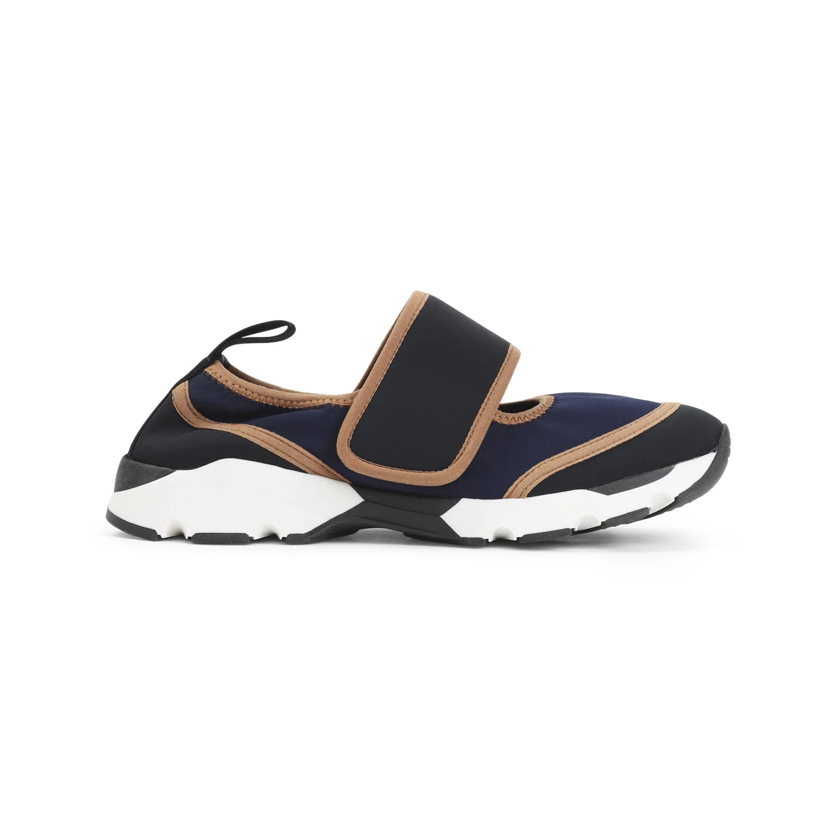 Marni Mary Jane Running Dark Blue and Black Polyamide Sneakers. A hybrid between running sneakers and Mary Jane shoes, they are crafted from black and blue lycra, with beige trims. They feature a round toe, a Velcro strap fastening on the top, a branded pull-tab on the back, a textile insole, and a white rubber outsole. Polyamide | 80%POLYAMIDE 20%ELASTANE 100%RUBBER Size Type: IT SKU: SNZW020602P7613Blue Our Products Are 100% Genuine. In All Cases We Stand By The Authenticity Of Every Product Sold On Our Site. All sales are final and we only accept returns for quality issue. Buyer is responsible for any import tax/duty if applicable.