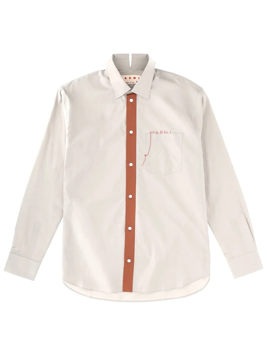 GRAY COTTON POPLIN SHIRT WITH MARNI MENDING LOGO