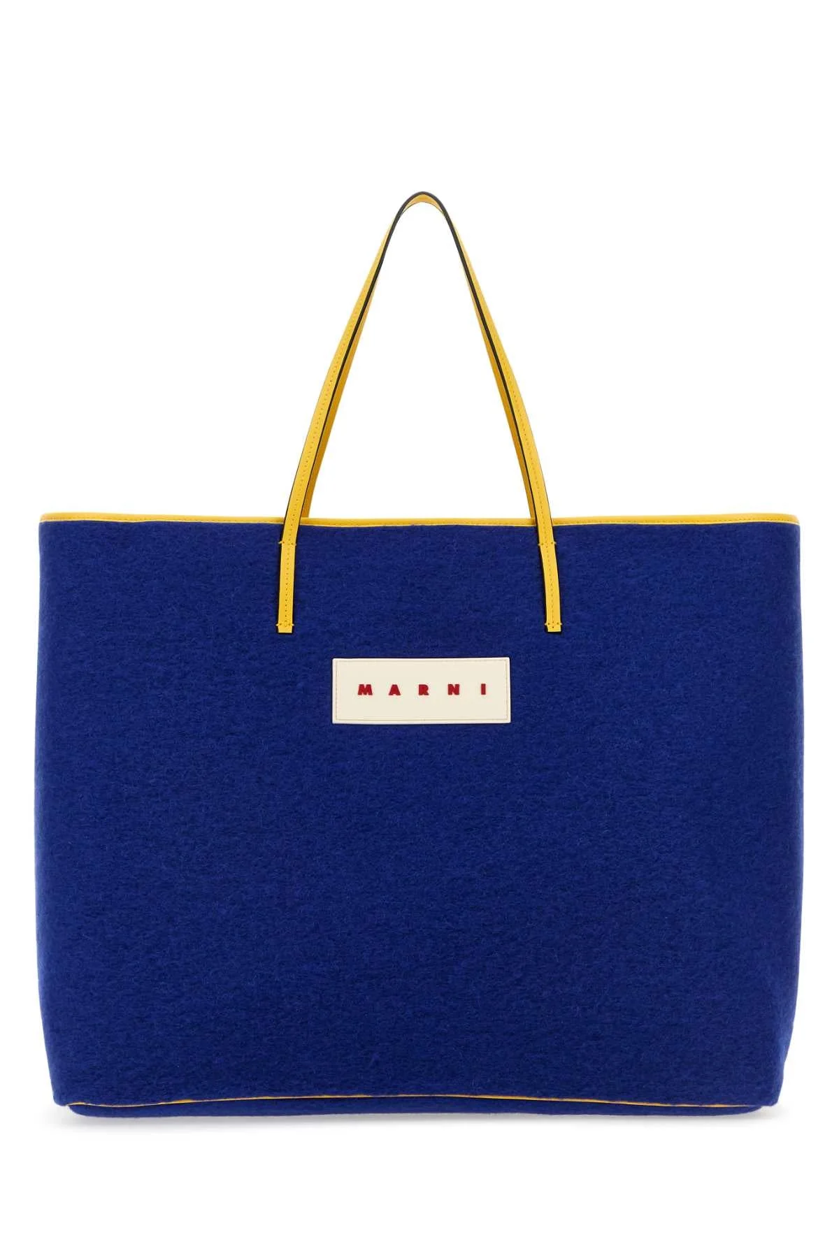 Marni Men Blue Felt Medium Janus Shopping Bag