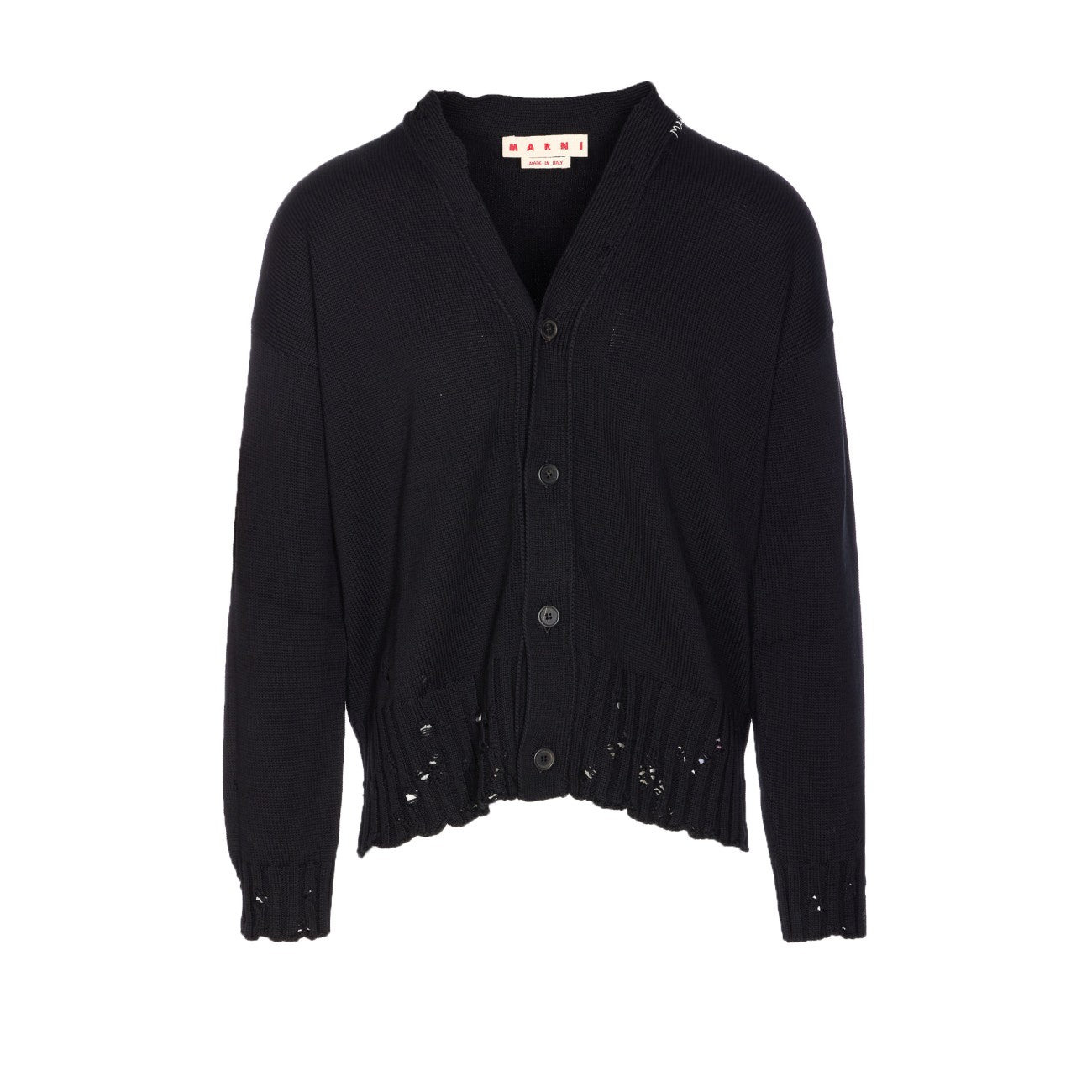 BLACK COTTON CARDIGAN WITH MARNI SYMBOL