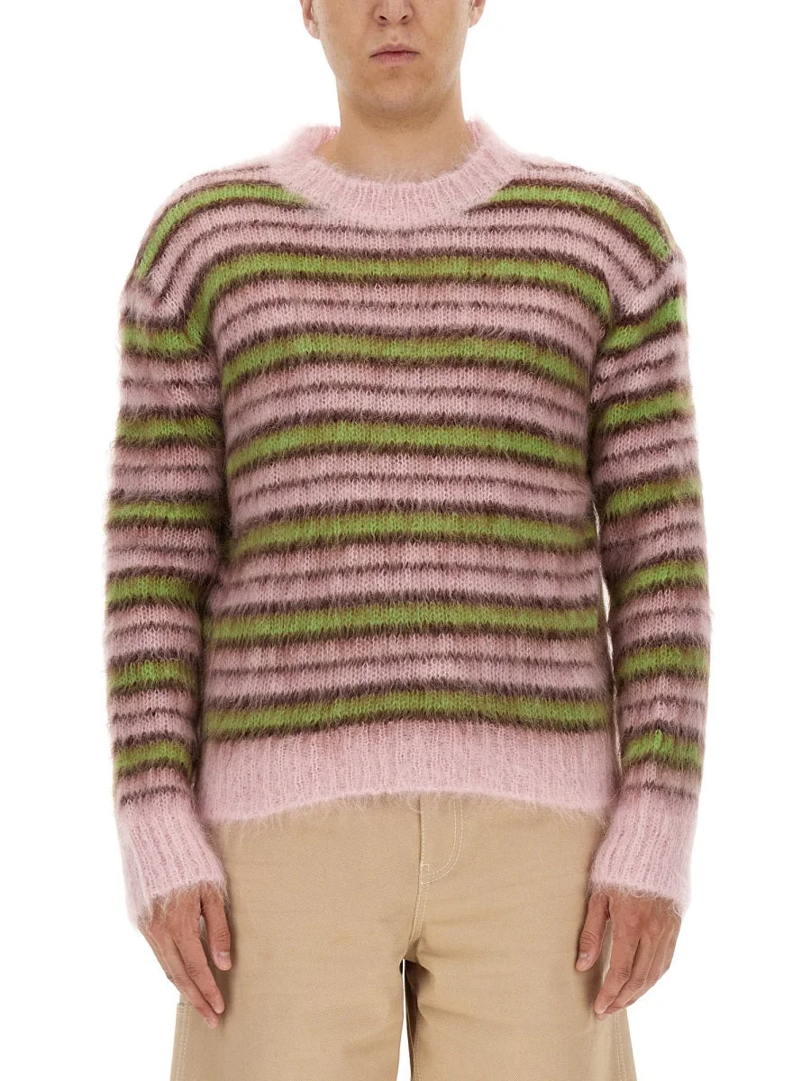 PINK STRIPED MOHAIR SWEATER