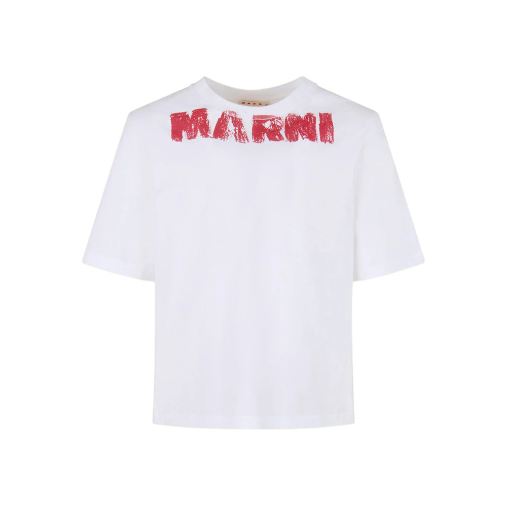 WHITE COTTON T-SHIRT WITH MARNI MONOLITH PRINT