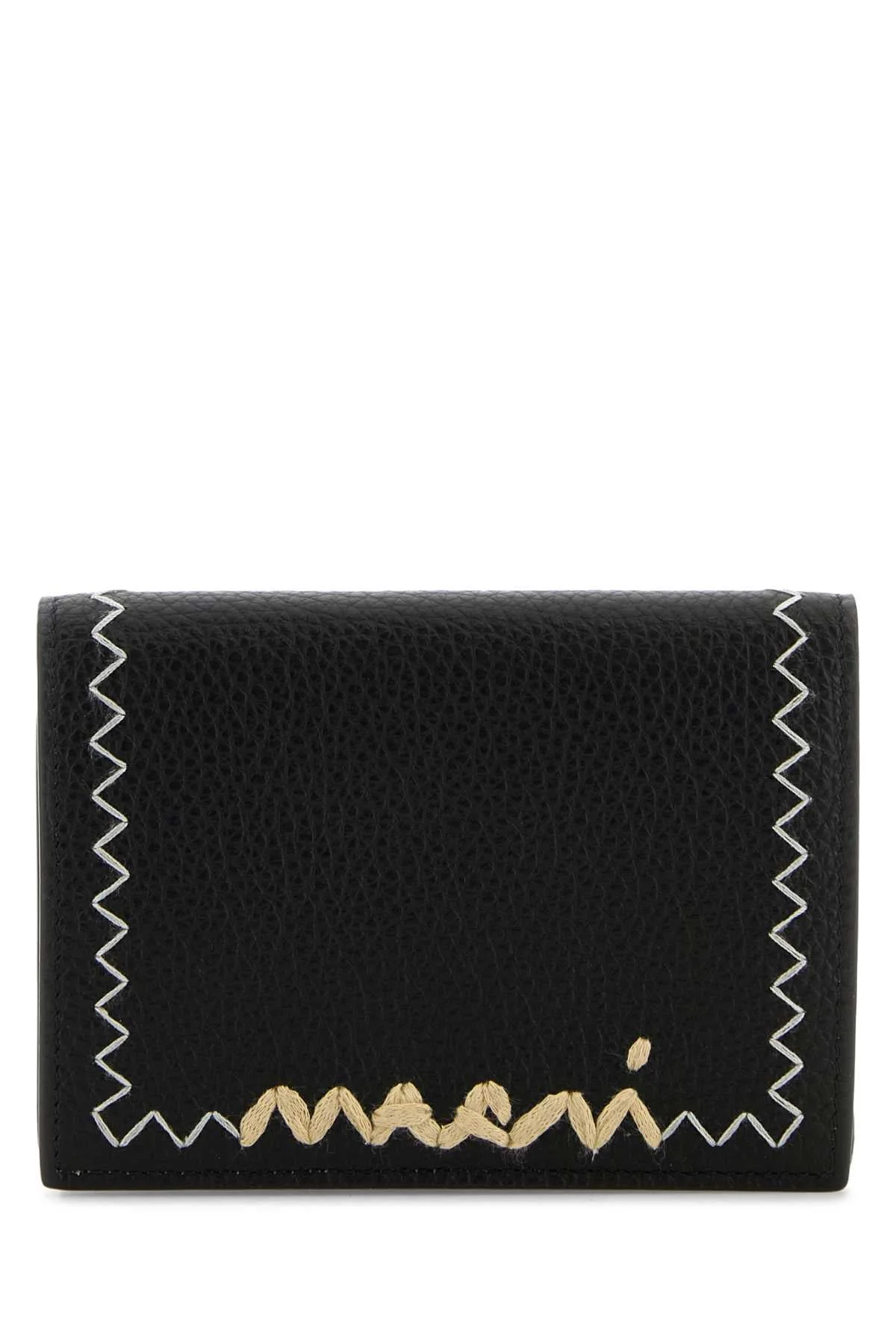 BLACK LEATHER TRIFOLD WALLET WITH MARNI SYMBOL LOGO