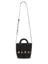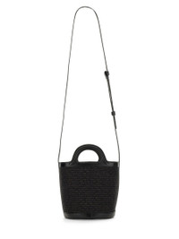 TROPICALIA MINI BUCKET BAG IN BLACK LEATHER AND RAFFIA