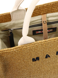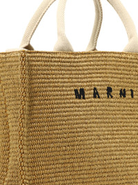Marni's "East/West" tote bag is a versatile and practical accessory designed for the modern woman who loves to combine elegance and functionality. Made of fabric with a raffia effect, this bag represents a combination of style and practicality. It can be carried either by hand or on the shoulder, making it an ideal complement for any occasion, from daily to evening outings, easily adapting to different clothing styles. || - Marni logo embroidered on the front - Cotton ribbon handles - Long shoulder strap - Fabric lining with zipper pocket - Palladium-colored metallic elements - Environmentally sustainable product 52% cotton 48% polyamide SKU: SHMP0077U0P3860Z0R42 Our Products Are 100% Genuine. In All Cases We Stand By The Authenticity Of Every Product Sold On Our Site. All sales are final and we only accept returns for quality issue. Buyer is responsible for any import tax/duty if applicable.