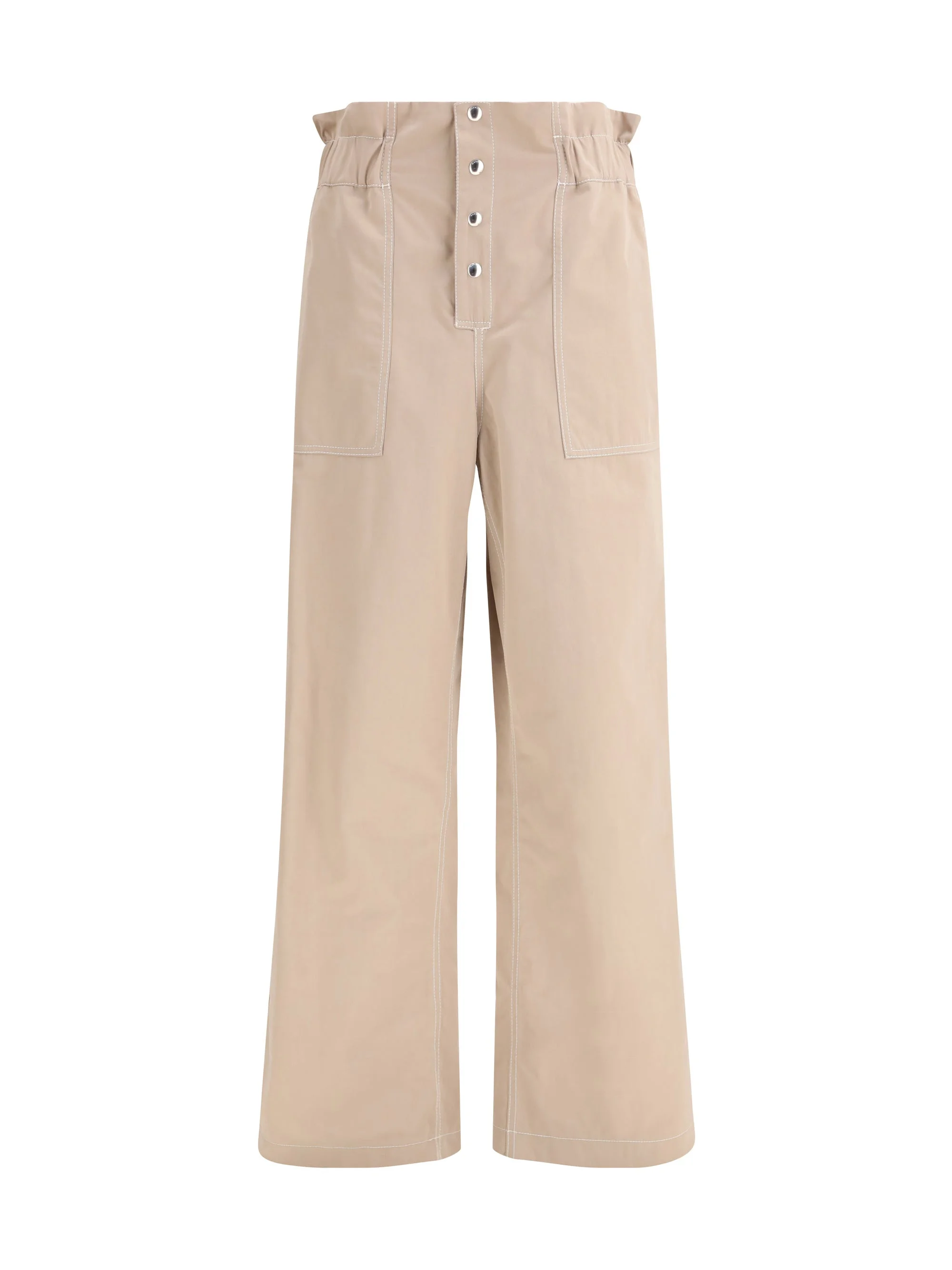 BEIGE GABARDINE PANTS WITH PAPERBAG WAIST