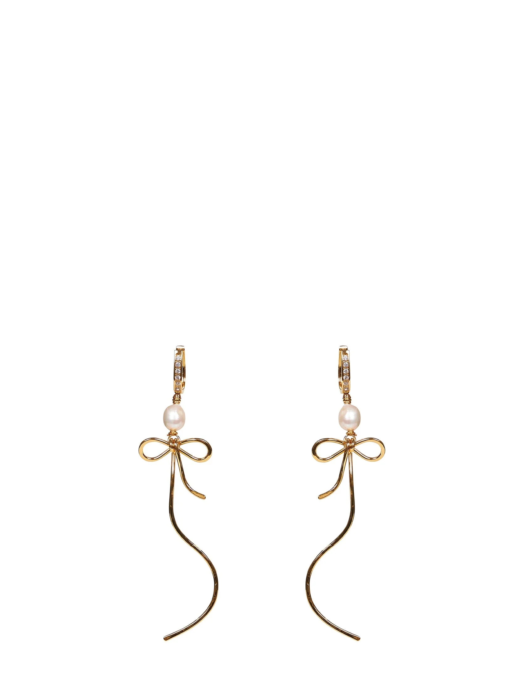 GOLDEN BOW DROP EARRINGS WITH PEARLS