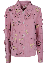 PINK SUEDE JACKET WITH FLOWER APPLIQUÉS