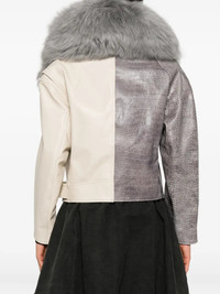 fur collar reptile-effect jacket