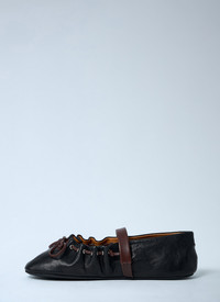 BLACK AND BROWN LEATHER MARY JANE SOFT BALLERINA