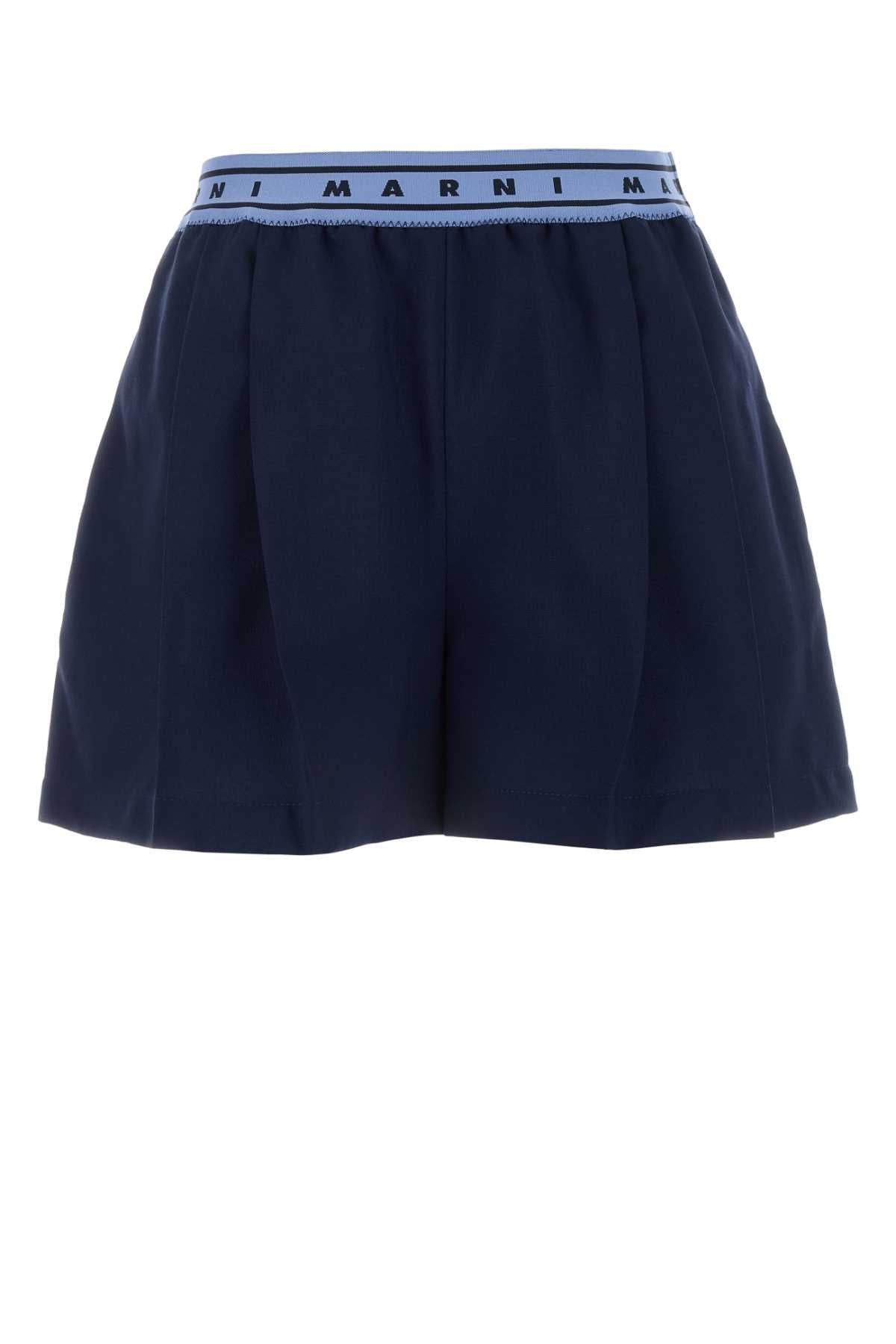 Marni Women Navy Blue Wool Shorts