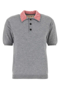 GRAY WOOL POLO SHIRT WITH VELVET COLLAR