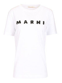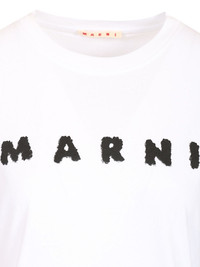 WHITE JERSEY COTTON T-SHIRT WITH MARNI SCRIBBLED LOGO