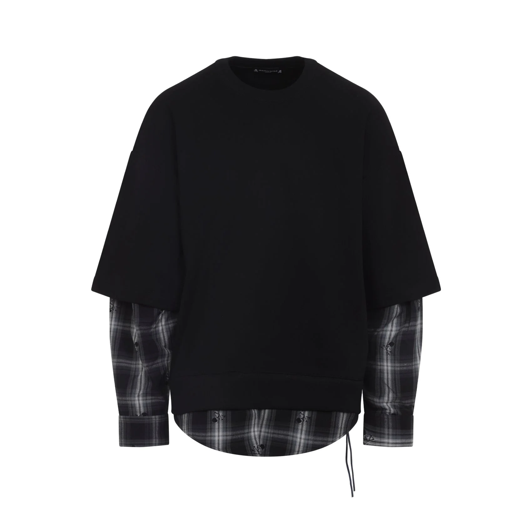Mastermind Japan Black Cotton Layered Sweatshirt. Pure black cotton sweatshirt, multilayered design, round neck, back checked skull design, dropped shoulders, short sleeves, side tonal strap, straight hem. Layer under black and white shirt, long sleeves, buttoned cuffs, round hem. Cotton | 100% COTTON Size Type: INT SKU: MJ25E15SW055903Black Our Products Are 100% Genuine. In All Cases We Stand By The Authenticity Of Every Product Sold On Our Site. All sales are final and we only accept returns for quality issue. Buyer is responsible for any import tax/duty if applicable.