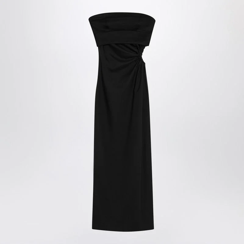 Long bustier dress by Max Mara in black wool, mohair, and silk, characterized by a semi-lined design with a fitted silhouette, elastic cut-out detail, gathered and draped on the left side, asymmetric slit at the bottom, and side zip closure. Model wears size 40 IT Model measurements: Height: 177 cm Chest: 83 cm Waist: 62 cm Hips: 90 cm Size Type: IT Material: Cotton SKU: SILVACO/QMAXM002102 Our Products Are 100% Genuine. In All Cases We Stand By The Authenticity Of Every Product Sold On Our Site. All sales are final and we only accept returns for quality issue. Buyer is responsible for any import tax/duty if applicable.