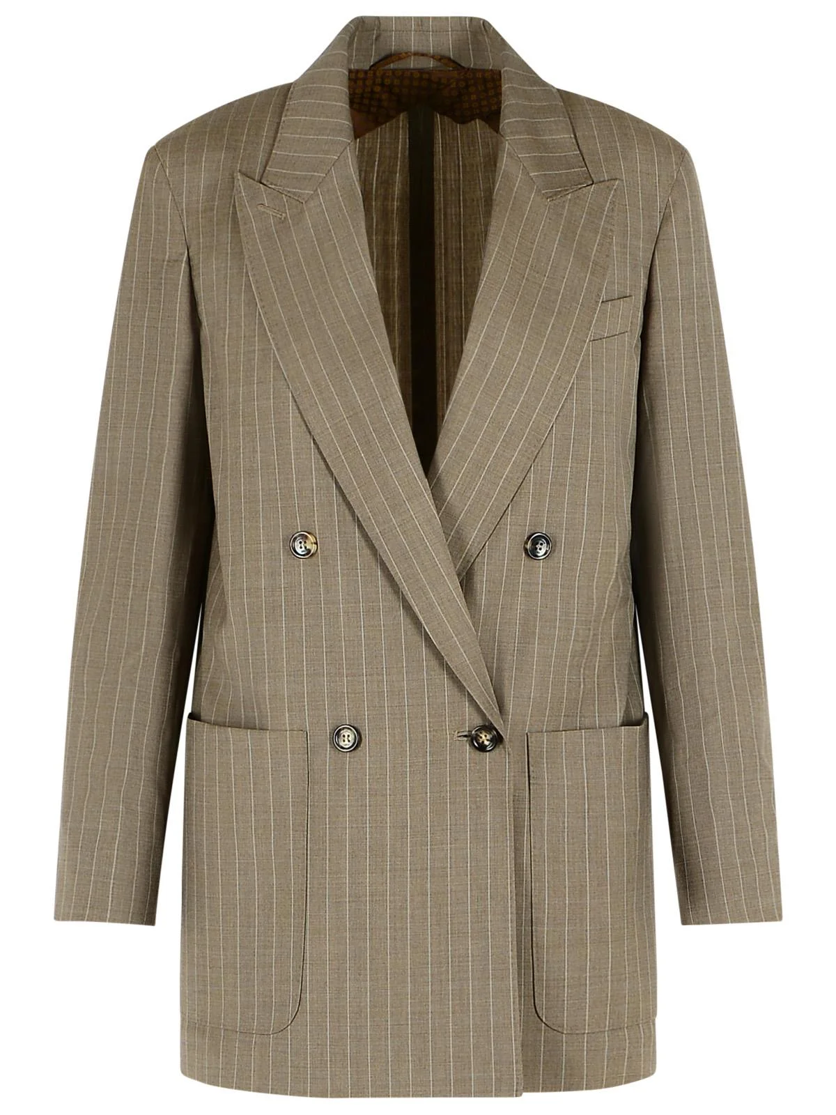Max Mara Oversize Blazer In Hazelnut Pinstriped Wool Tela Women