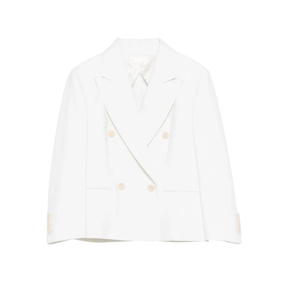 white double-breasted button fastening peaked lapels long sleeves straight hem MADE IN:ItalyMATERIAL:Virgin Wool: 98.0%, Elastane: 2.0%COLOR:WHITE SKU: MXMDORICO435001 Our Products Are 100% Genuine. In All Cases We Stand By The Authenticity Of Every Product Sold On Our Site. All sales are final and we only accept returns for quality issue. Buyer is responsible for any import tax/duty if applicable.