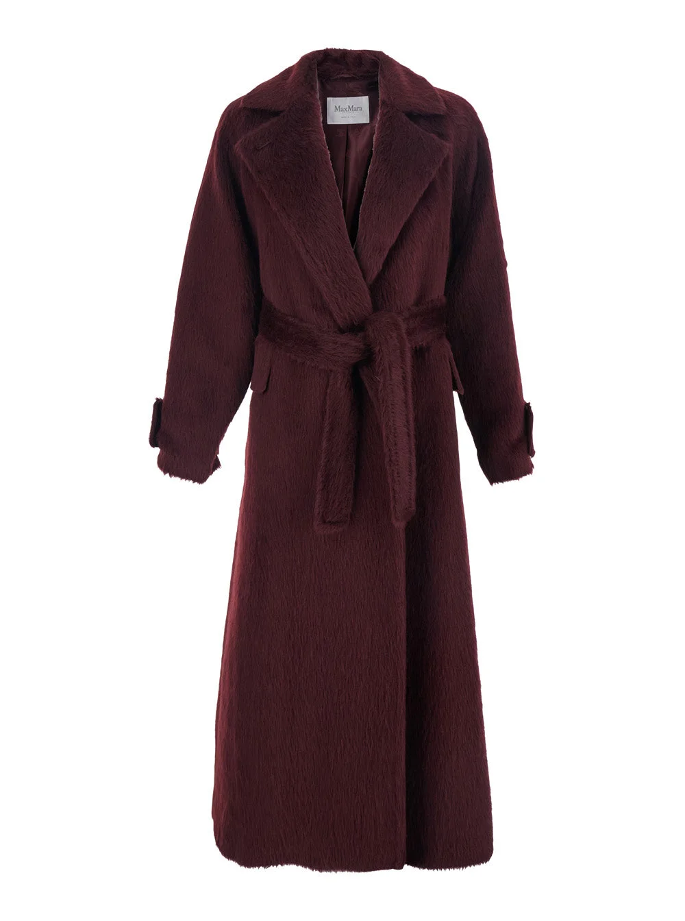 Max Mara Women 'Albata' Bordeaux Coat With Peak Revers And Front Belt Closure In Wool Woman