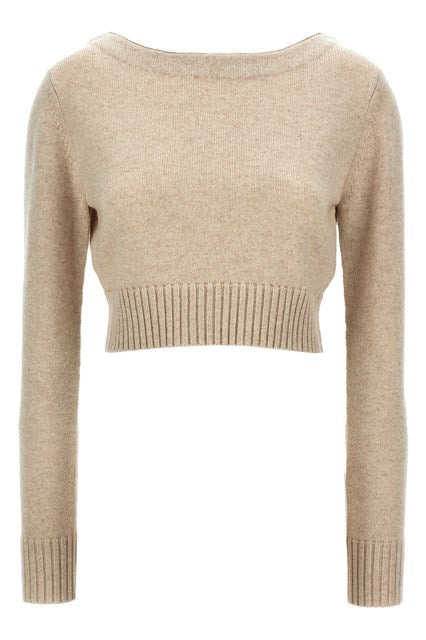 Angri' cropped sweater in wool and cashmere blend with boat neck, long cuffed sleeves. Color: Beige Size & Fit: true to size fit Composition: 70% wool 30% cachemire Made in: China Size Type: STANDARD SKU: ANGRI002 This is a final sale clearance product. Our Products Are 100% Genuine. In All Cases We Stand By The Authenticity Of Every Product Sold On Our Site. All sales are final and we only accept returns for quality issue. Buyer is responsible for any import tax/duty if applicable.