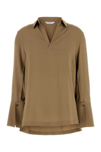 Max Mara Women Camel Stretch Crepe Dover Blouse
