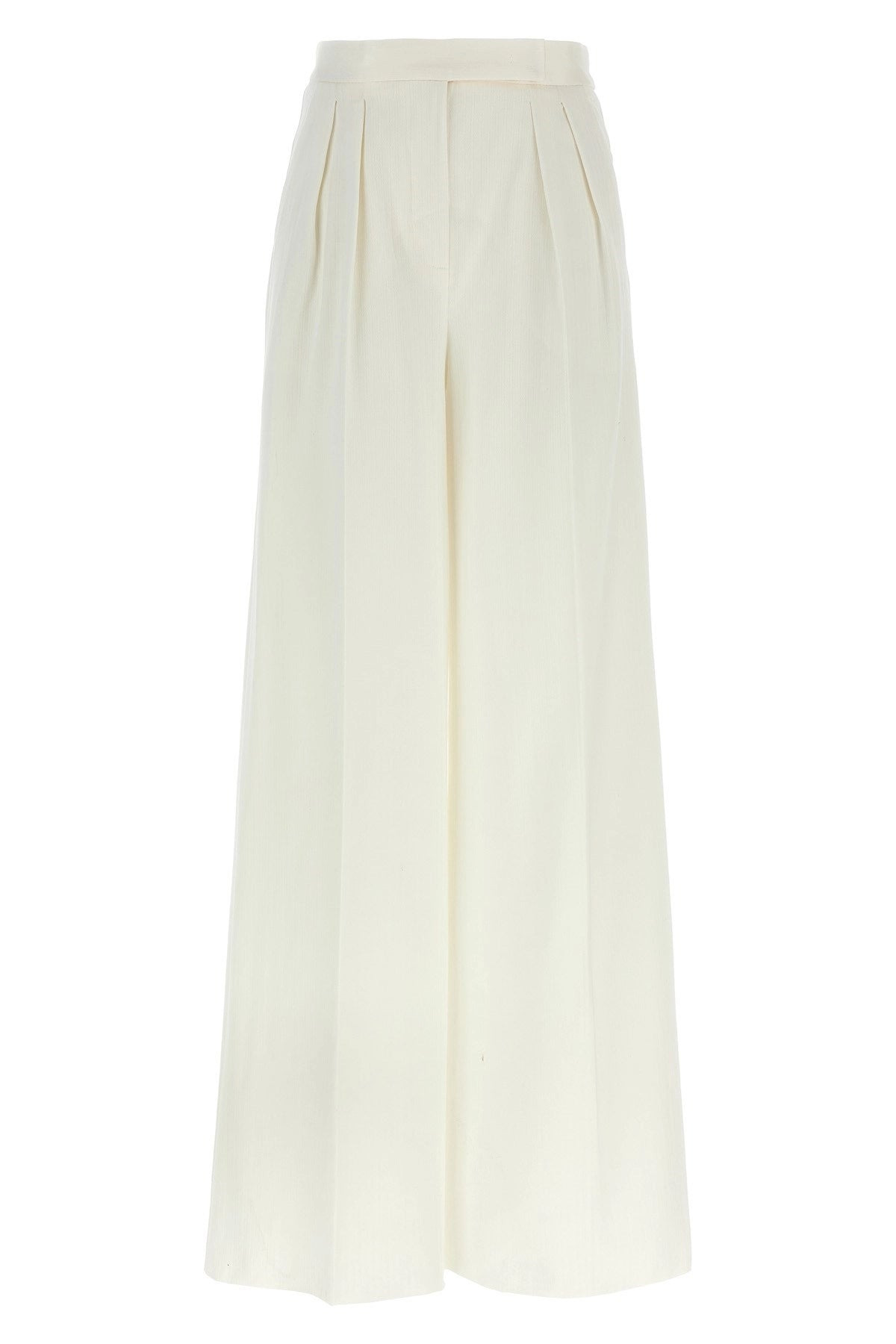 Chenzia' cotton jersey pants with pinstriped jacquard design, high waist with wide leg, double front pleats, pockets, zip hook and front button closure, V detail at the back waist. Color: White Size & Fit: true to size fit Composition: 100% cotton Made in: Romania SKU: 2511781012600001 Our Products Are 100% Genuine. In All Cases We Stand By The Authenticity Of Every Product Sold On Our Site. All sales are final and we only accept returns for quality issue. Buyer is responsible for any import tax/duty if applicable.
