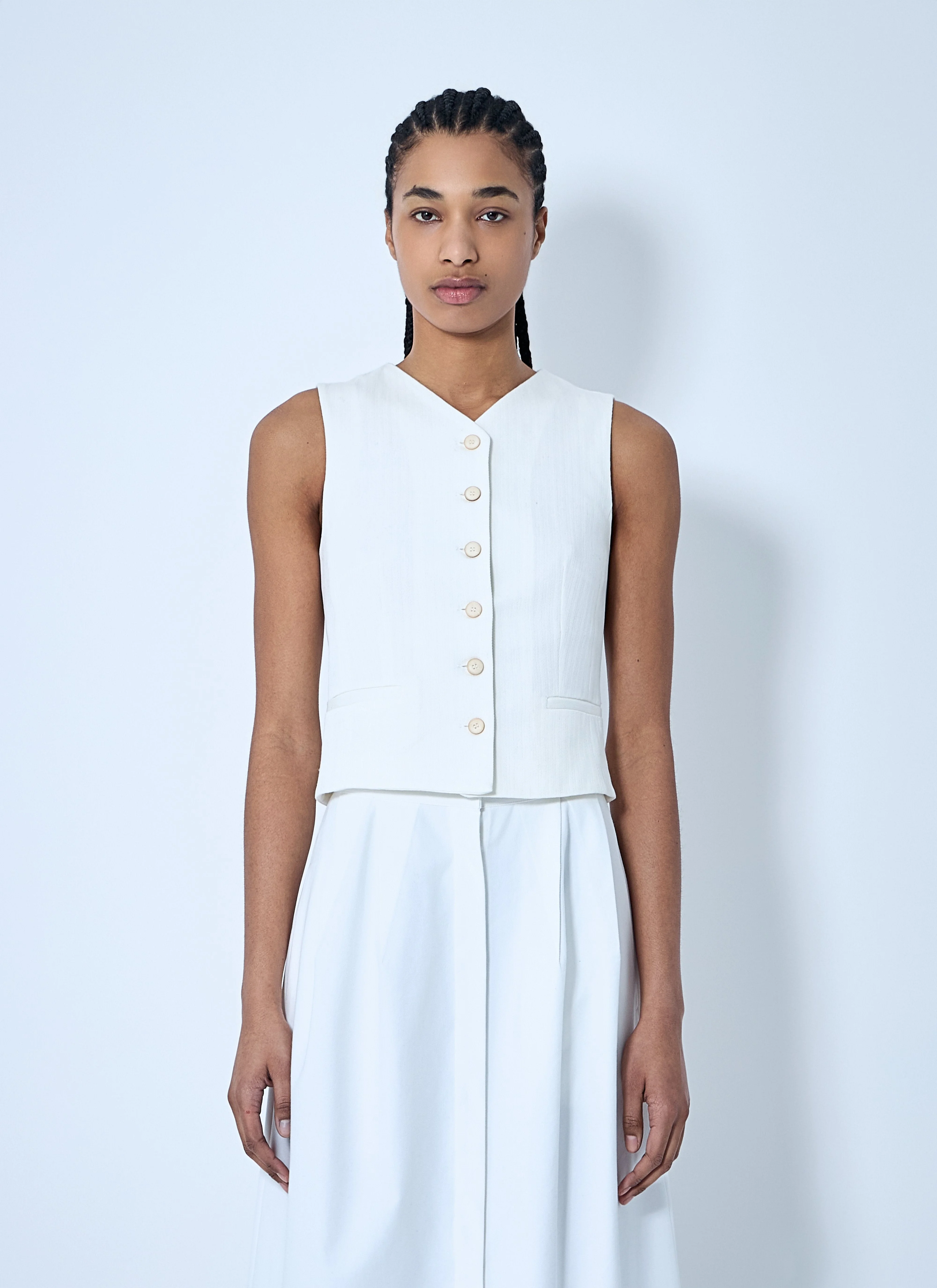 Cotton waistcoat in stretch finish. V neck Front button fastening Front welt pockets Cropped 100% Cotton. Hand wash 2511911012670 001 SKU: 2511911012670001 Our Products Are 100% Genuine. In All Cases We Stand By The Authenticity Of Every Product Sold On Our Site. All sales are final and we only accept returns for quality issue. Buyer is responsible for any import tax/duty if applicable.