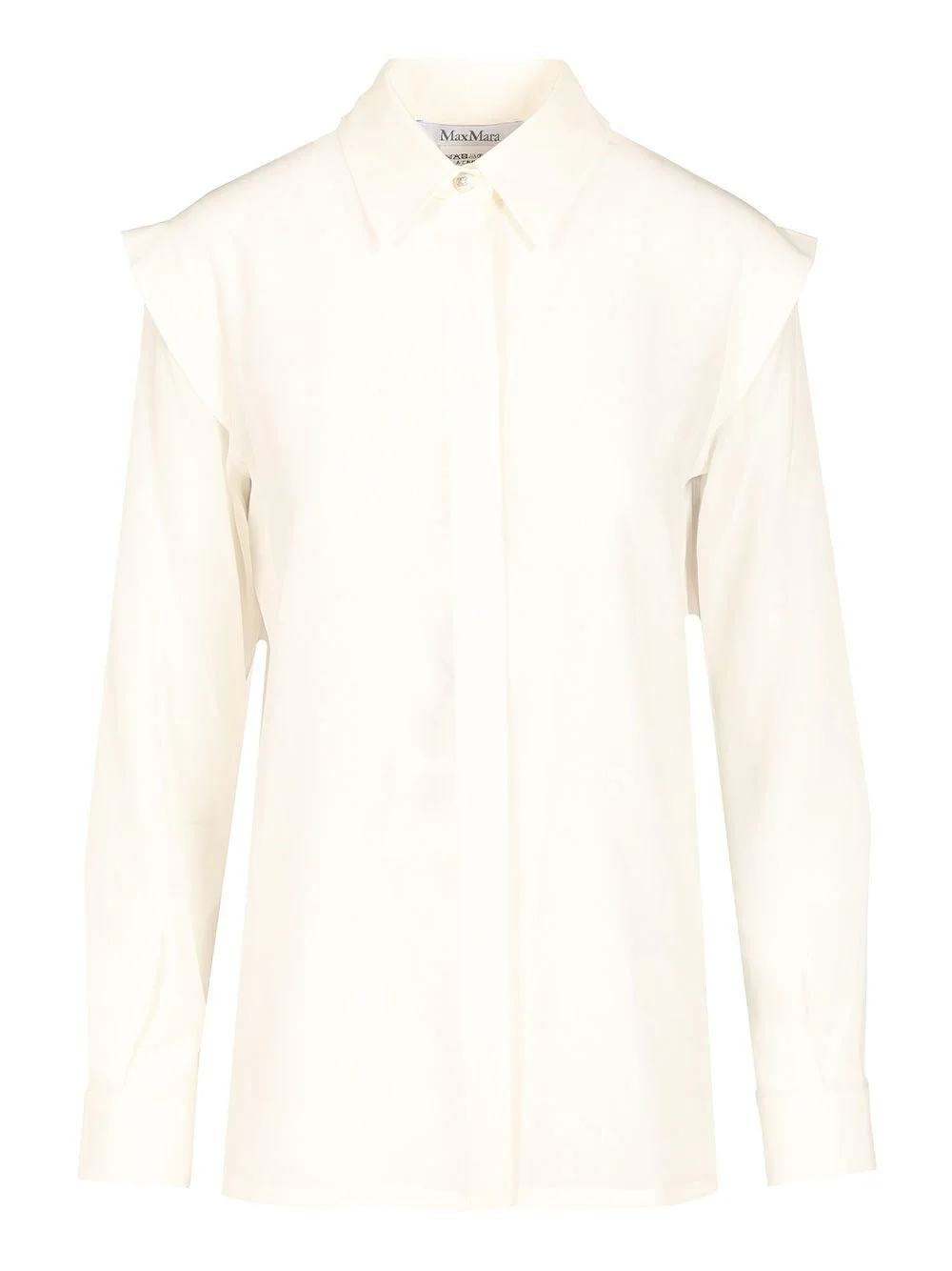 Crepe de Chine shirt by Max Mara, with pointed collar, long low-cut sleeves, cuffs with side buttons and front fastening with hidden buttons 100% Silk Made in: PT SKU: 2521116101600124001 Our Products Are 100% Genuine. In All Cases We Stand By The Authenticity Of Every Product Sold On Our Site. All sales are final and we only accept returns for quality issue. Buyer is responsible for any import tax/duty if applicable.