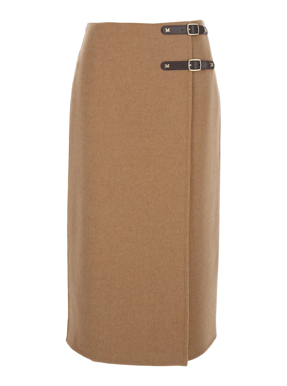 Max Mara Women 'Curzio' Beige Skirt With Front Straps And Rear Zip Closure In Wool Woman