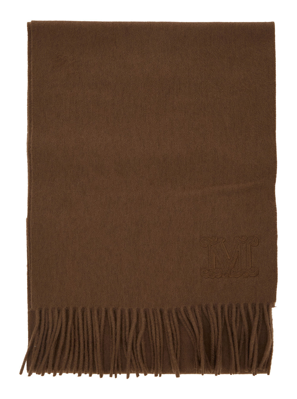 Max Mara Women 'Dalia' Brown Rectangular Scarf With Logo Embroidery On The Front And Fringed Hem In