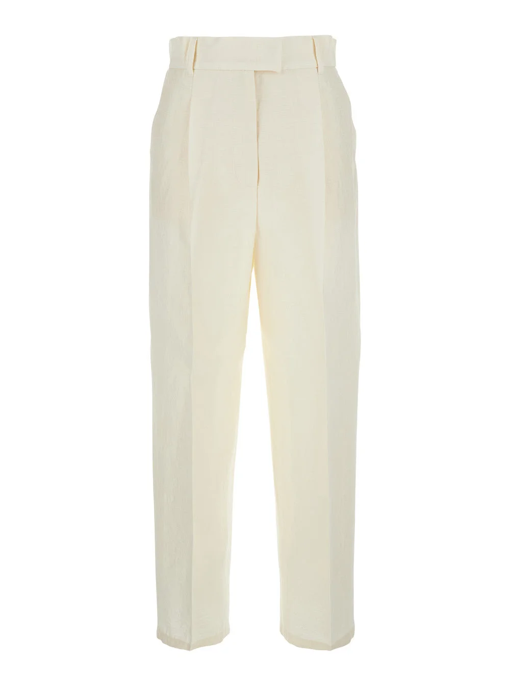 Max Mara Women 'Efedra' White Pants With Patch Pockets On The Back In Linen And Silk Blend Woman