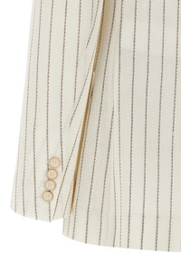 'Jadi' single-breasted blazer in cotton and linen blend with front one-button closure, mirror lapels, flap pockets, long sleeves, structured, unlined shoulder strap, back split. Color: White Size & Fit: true to size fit Composition: 62% cotton, 38% flaxlinen Made in: Italy SKU: 2511911022600001 Our Products Are 100% Genuine. In All Cases We Stand By The Authenticity Of Every Product Sold On Our Site. All sales are final and we only accept returns for quality issue. Buyer is responsible for any import tax/duty if applicable.