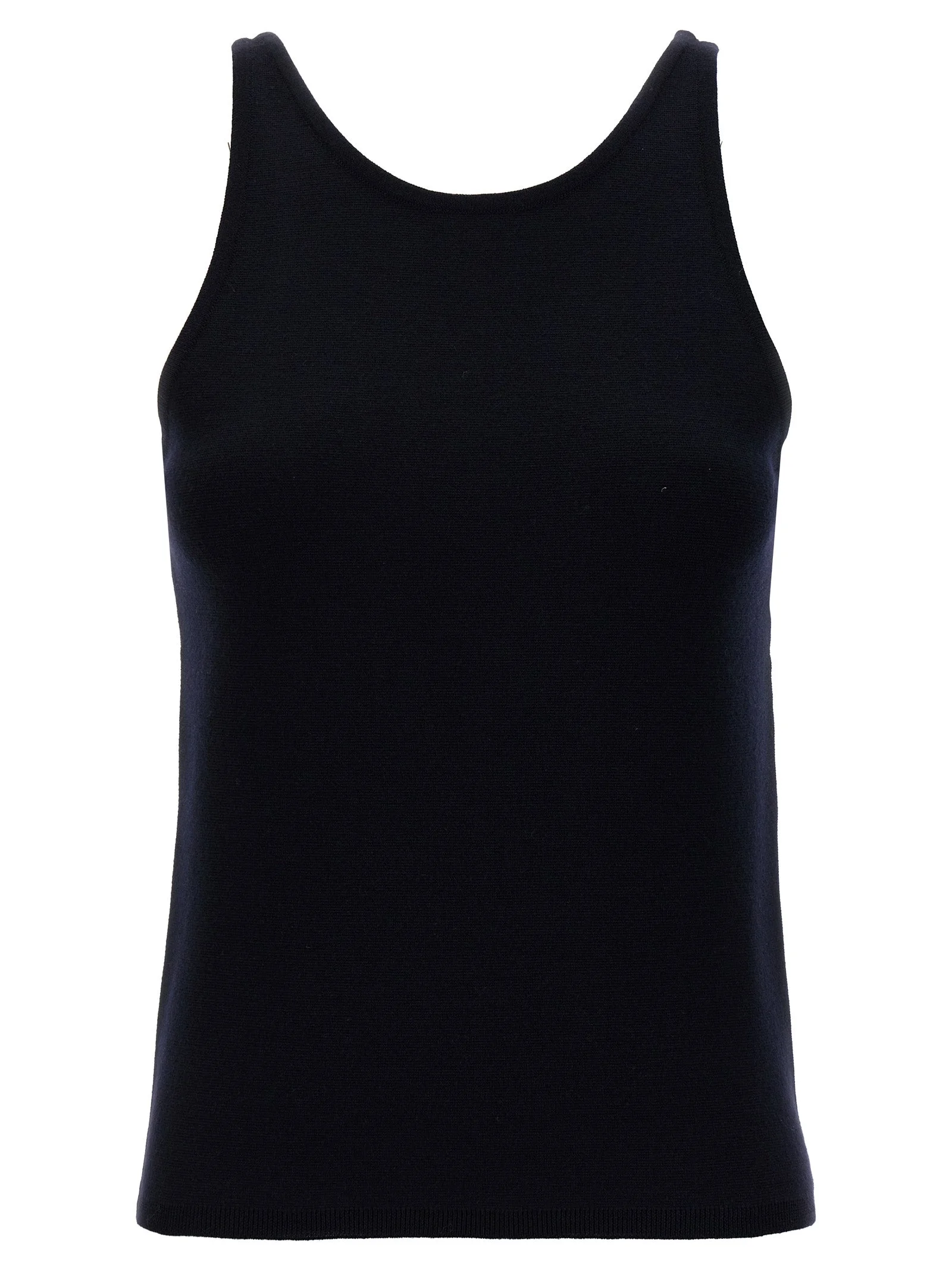 Stretch wool knit top, crew neck, thin straps. true to size fit 79% virgin wool 19% polyamide 2% elastane SKU: ALFEO005 Our Products Are 100% Genuine. In All Cases We Stand By The Authenticity Of Every Product Sold On Our Site. All sales are final and we only accept returns for quality issue. Buyer is responsible for any import tax/duty if applicable.