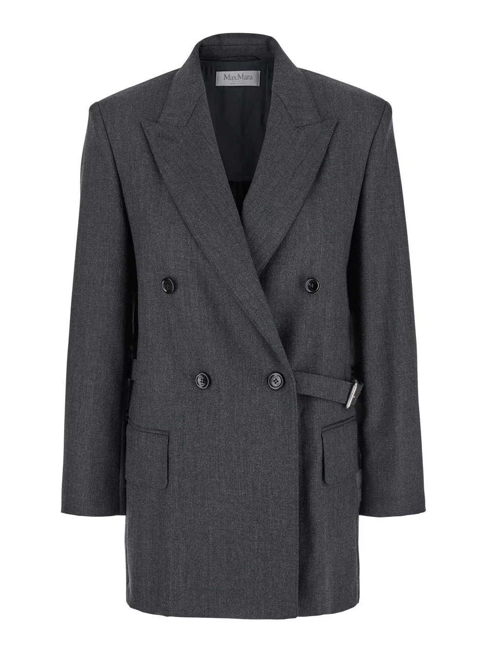 Max Mara Women 'Latino' Grey Double-Breasted Jacket With Peak Revers And Waist Belt In Virgin Wool W
