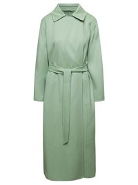 Max Mara Women Light Green Hans Long Coat With Belt In Wool Blend Woman