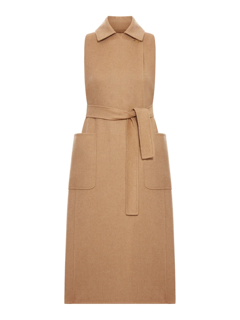 - Classic collar - Sleeveless - Front button closure with one side button - Removable waist belt - Two front patch pockets Made in Italy Composition: Camel Hair 100% camel hair Color code: 001 CAMEL Size Type: IT SKU: 2521276193600 Our Products Are 100% Genuine. In All Cases We Stand By The Authenticity Of Every Product Sold On Our Site. All sales are final and we only accept returns for quality issue. Buyer is responsible for any import tax/duty if applicable.