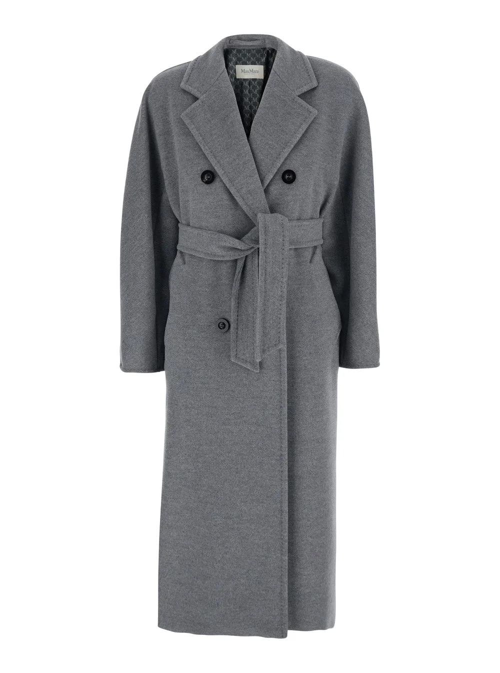 Max Mara Women 'Madame' Grey Double-Breasted Coat With Notched Revers And Front Belt In Wool And Cas
