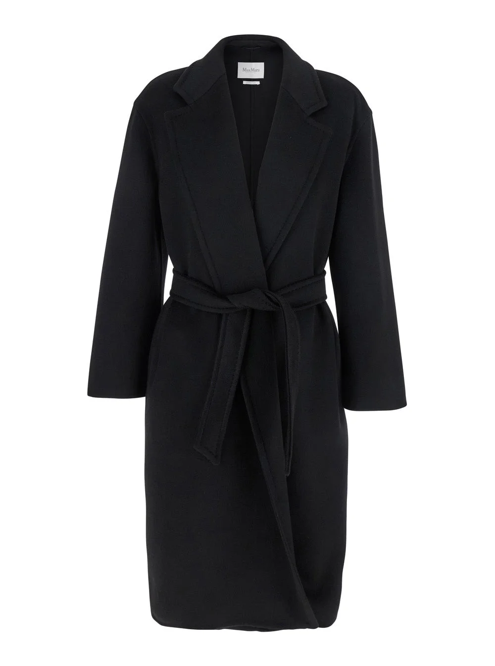 Max Mara Women 'Melinda' Black Single-Breasted Coat Wiht Notched Revers And Front Belt Closure In Ca