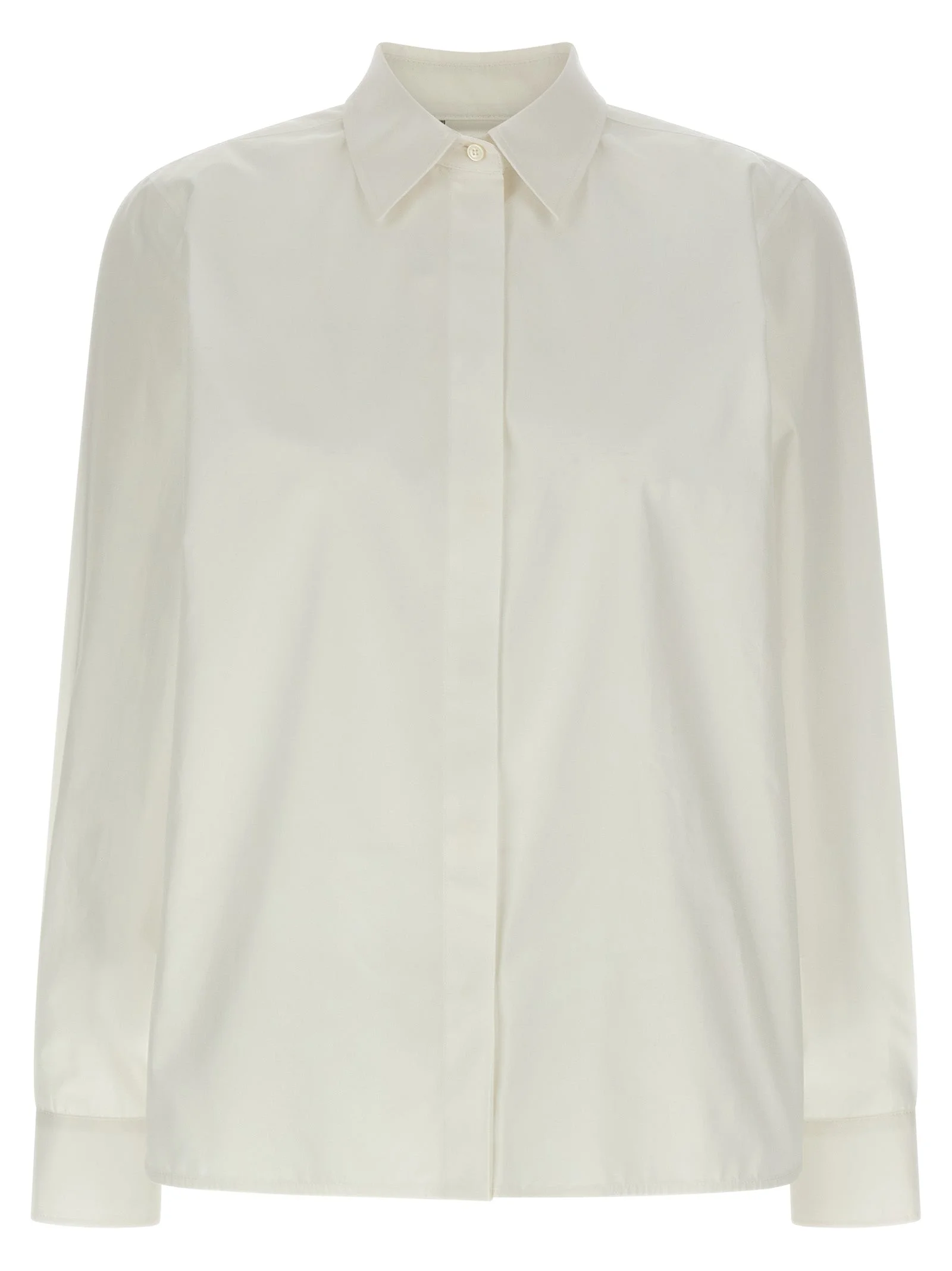 'MxmMaroso' cotton poplin shirt with concealed front button closure, long sleeves with cuffs and metal logo applique, rounded hem with side slits. true to size fit 100% cotton SKU: 2611111101600001 Our Products Are 100% Genuine. In All Cases We Stand By The Authenticity Of Every Product Sold On Our Site. All sales are final and we only accept returns for quality issue. Buyer is responsible for any import tax/duty if applicable.