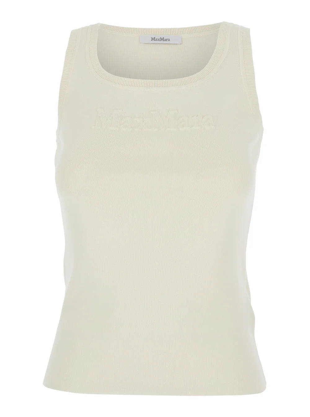 Max Mara Women 'Pentola' White Sleeveless Top With Square Neck And Tonal Logo Lettering Embroidery O
