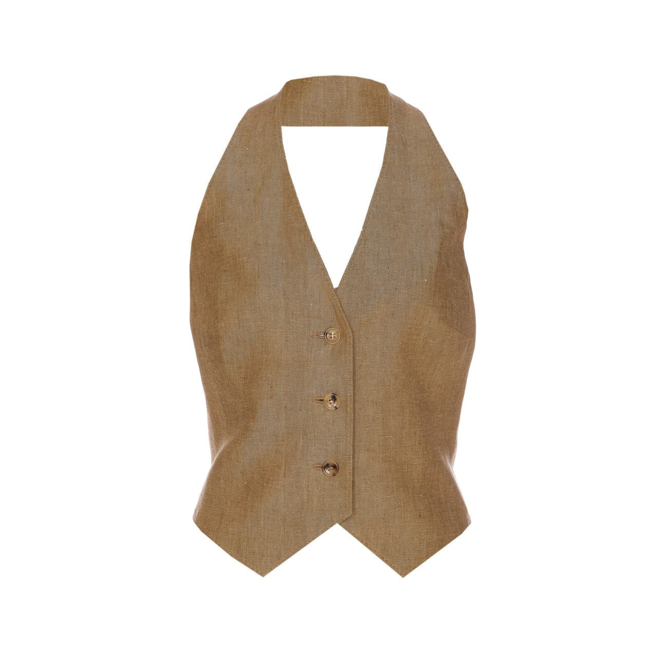 kabia_id: 712789 Made In: Italy Composition: 100%lin Color: Beige Measures: eu size (it) Gender: Female Season: Spring Summer 2025 Model is wearing size: 42 Sleeves: Sleeveless Neck: Open Back Neck: Halter neck Tops Closing: Front button fastening Size Type: IT SKU: 2511151012600SAURO001 Our Products Are 100% Genuine. In All Cases We Stand By The Authenticity Of Every Product Sold On Our Site. All sales are final and we only accept returns for quality issue. Buyer is responsible for any import tax/duty if applicable.