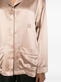 blush beige silk satin weave notched collar long sleeves piped-trim detailing embroidered logo to the side two side patch pockets short side slits straight hem concealed front button fastening Size Type: IT SKU: 11191014600012 Our Products Are 100% Genuine. In All Cases We Stand By The Authenticity Of Every Product Sold On Our Site. All sales are final and we only accept returns for quality issue. Buyer is responsible for any import tax/duty if applicable.