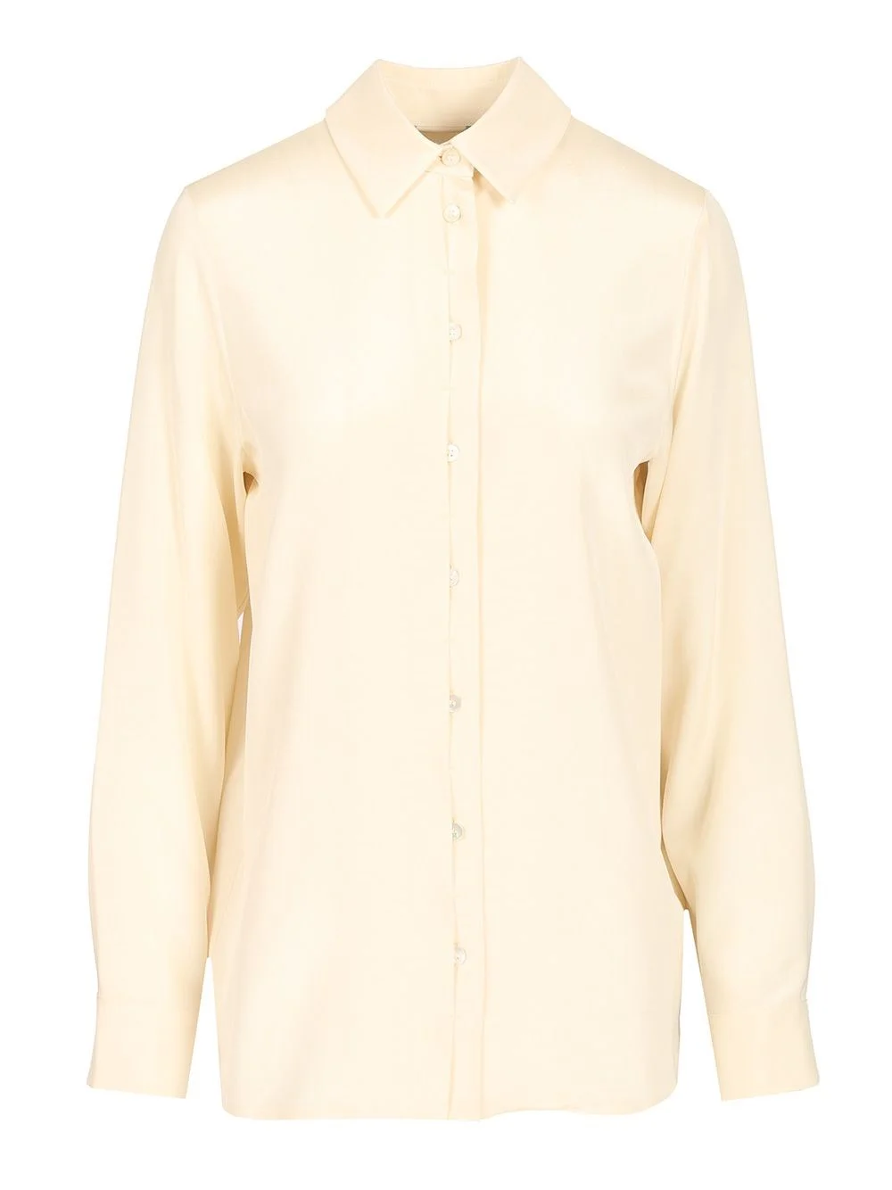 Stretch silk cady shirt by Max Mara, with classic collar, long set-in sleeves with cuff and side button, front fastening with mother-of-pearl buttons, yoke cut and central pleat on the back, alternating stitch pattern on the front fastening 93% Silk, 07% Elastane Made in: IT SKU: 2521116018600120005 Our Products Are 100% Genuine. In All Cases We Stand By The Authenticity Of Every Product Sold On Our Site. All sales are final and we only accept returns for quality issue. Buyer is responsible for any import tax/duty if applicable.